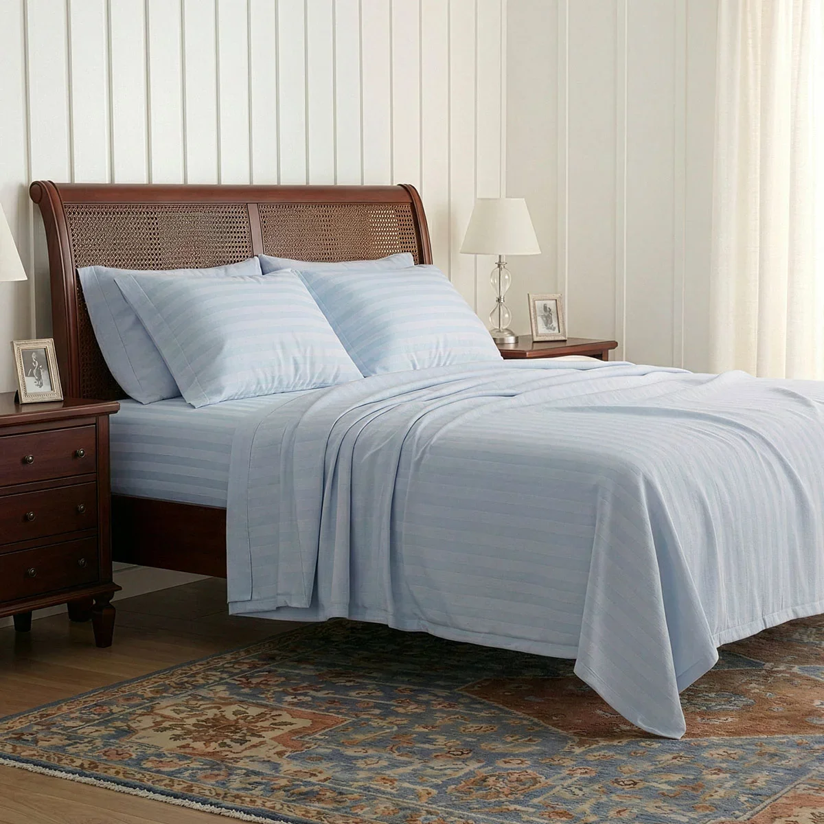 Made from ultra-fine 1200TC 100% cotton with a rich sateen finish, these sheets feel buttery-soft, naturally breathable, and beautifully smooth. The upgraded secure-fit design, extra-deep drop, and stronger elastic keep everything firmly in place, so your bed looks neat and stays that way.